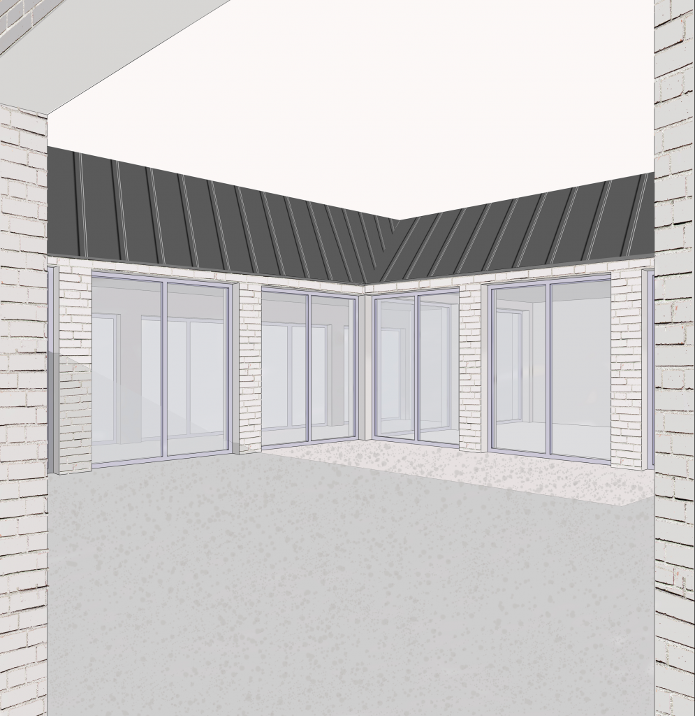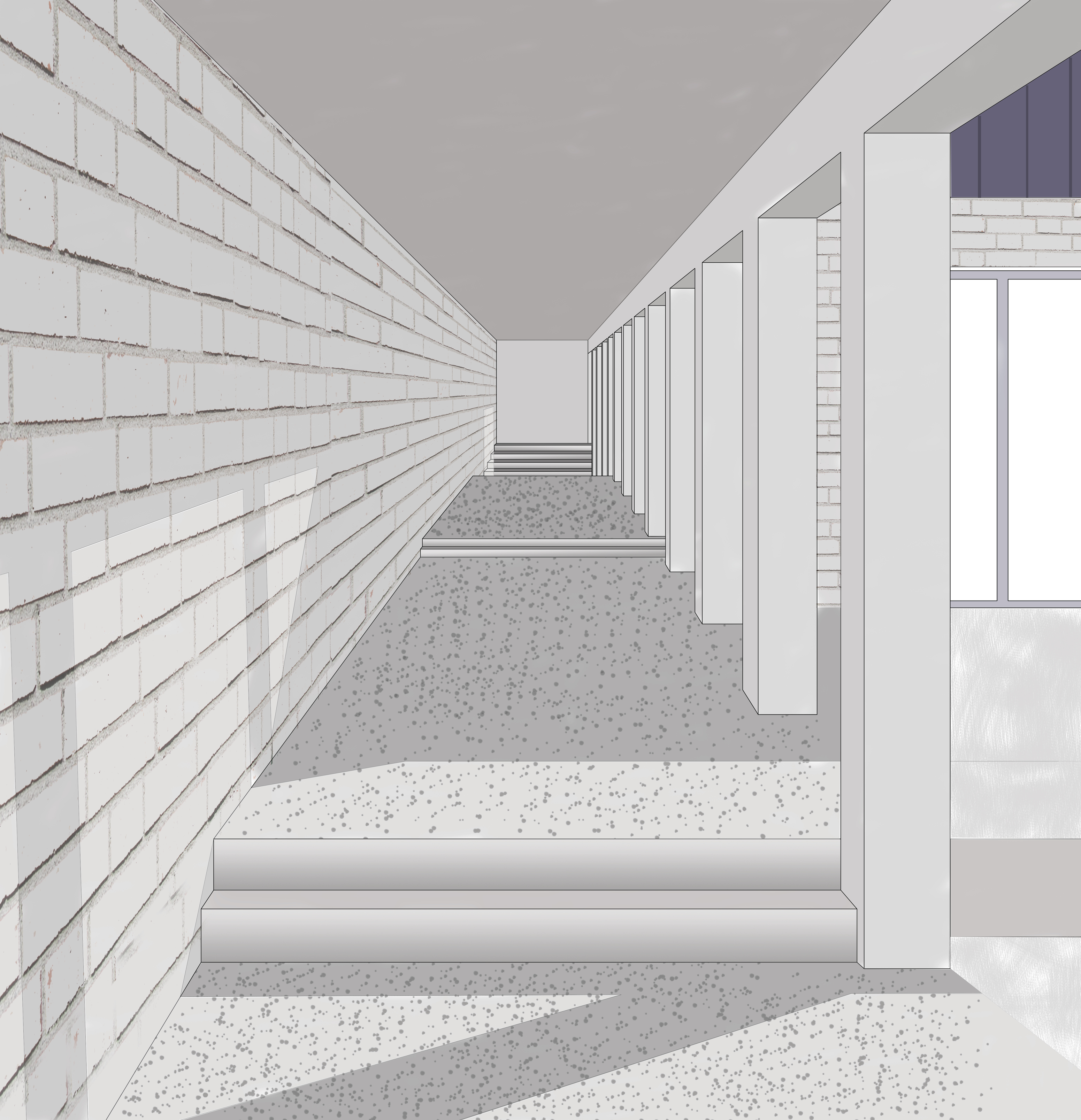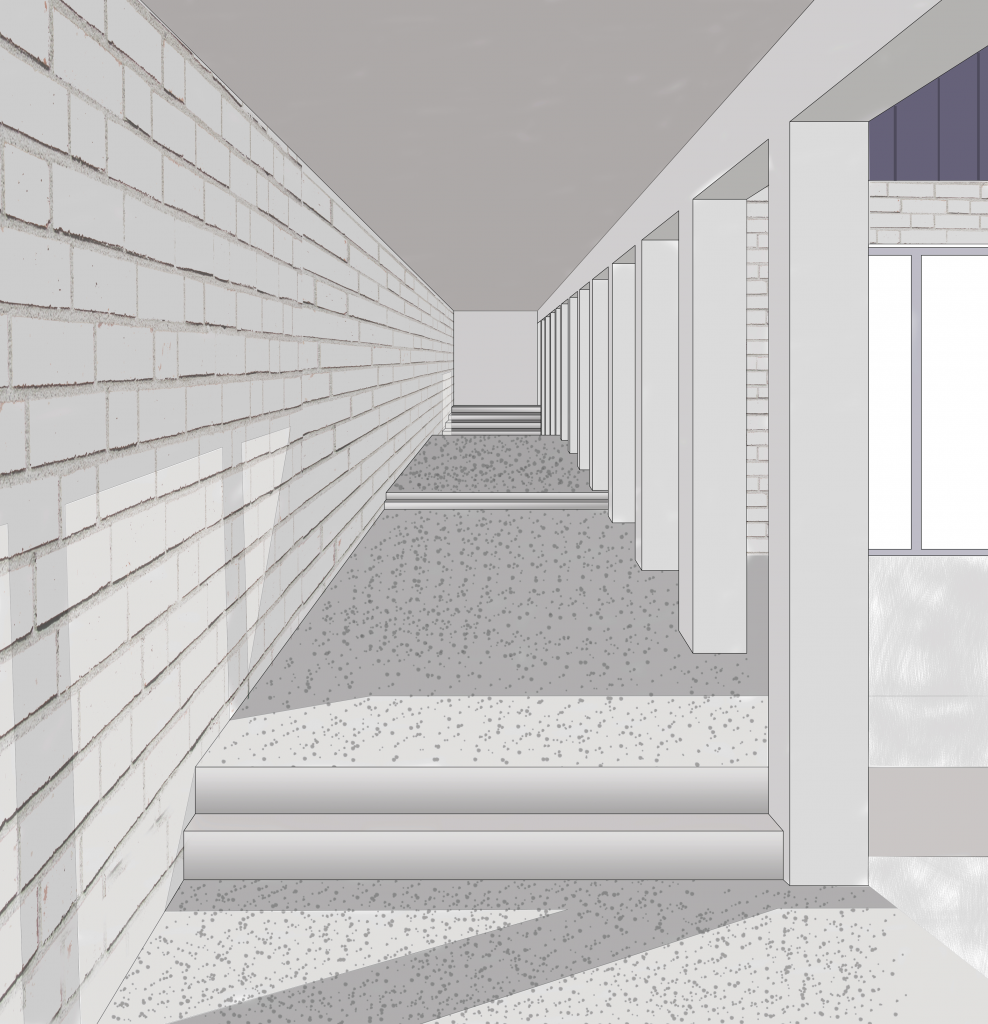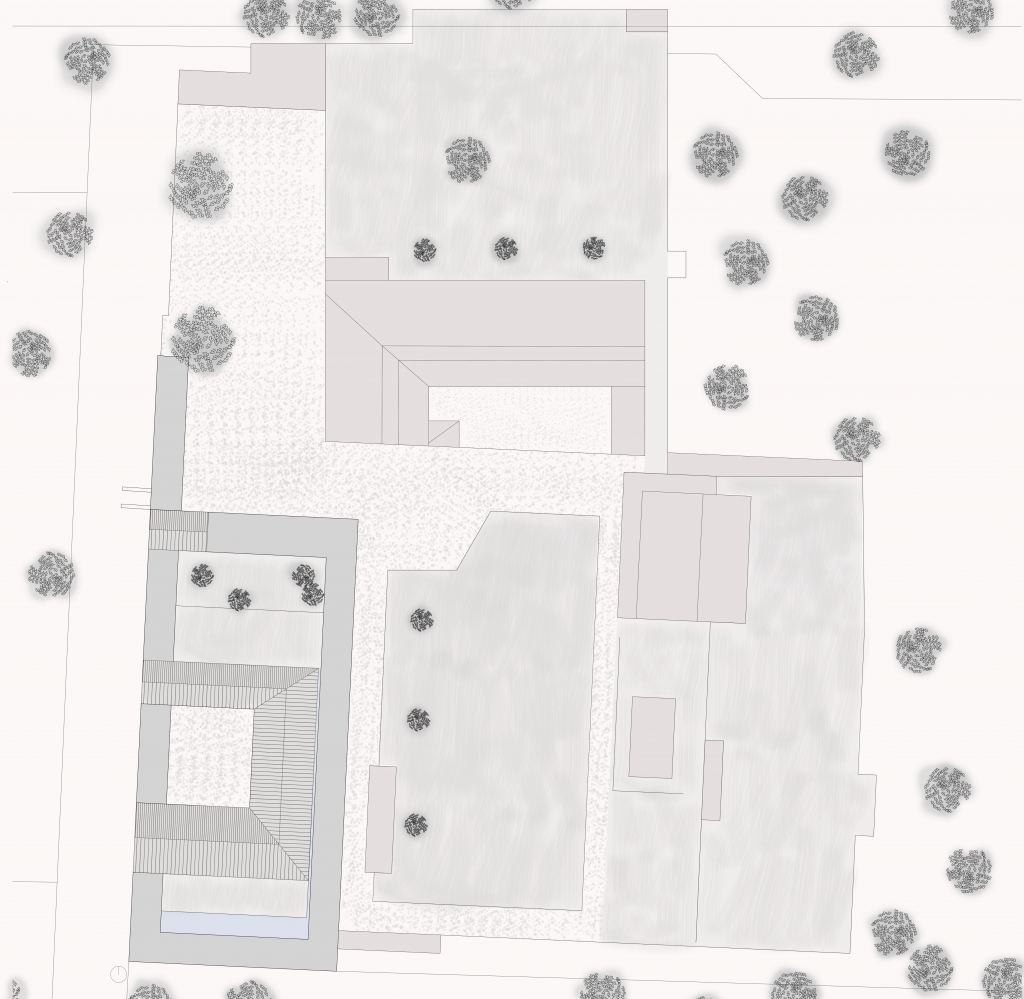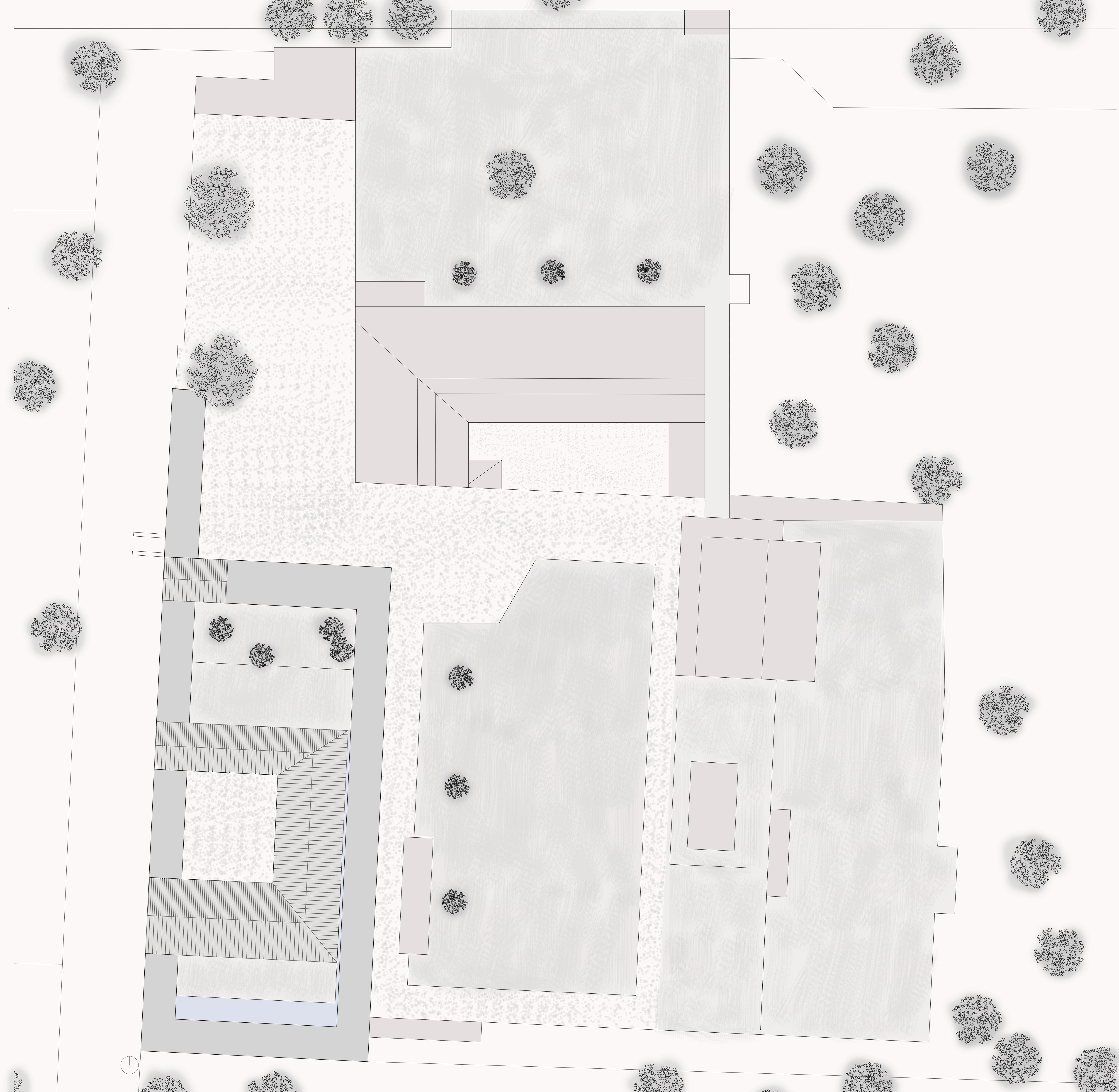 I referred here to Jan de Jong’s overall concept, in which he combines various buildings through courtyards to form an ensemble. The newly created guest house extends the existing buildings on a still undeveloped part of the property, which he saw as a possible building site. Here, three new courtyards are now created from the interplay of the courtyard house and the surrounding arcade, which are adapted to the life of the meeting sports and nutrition scientists.