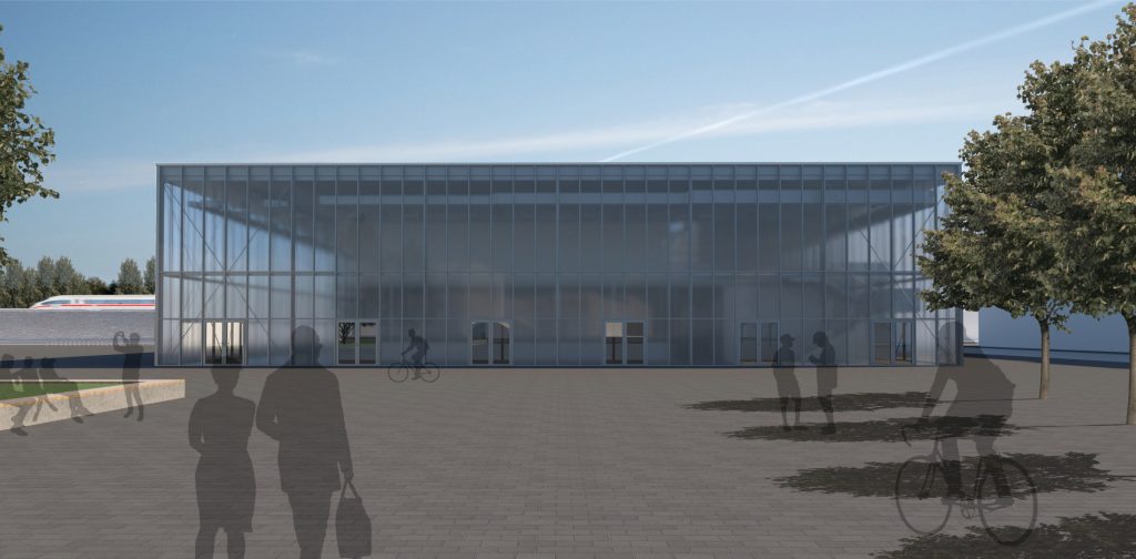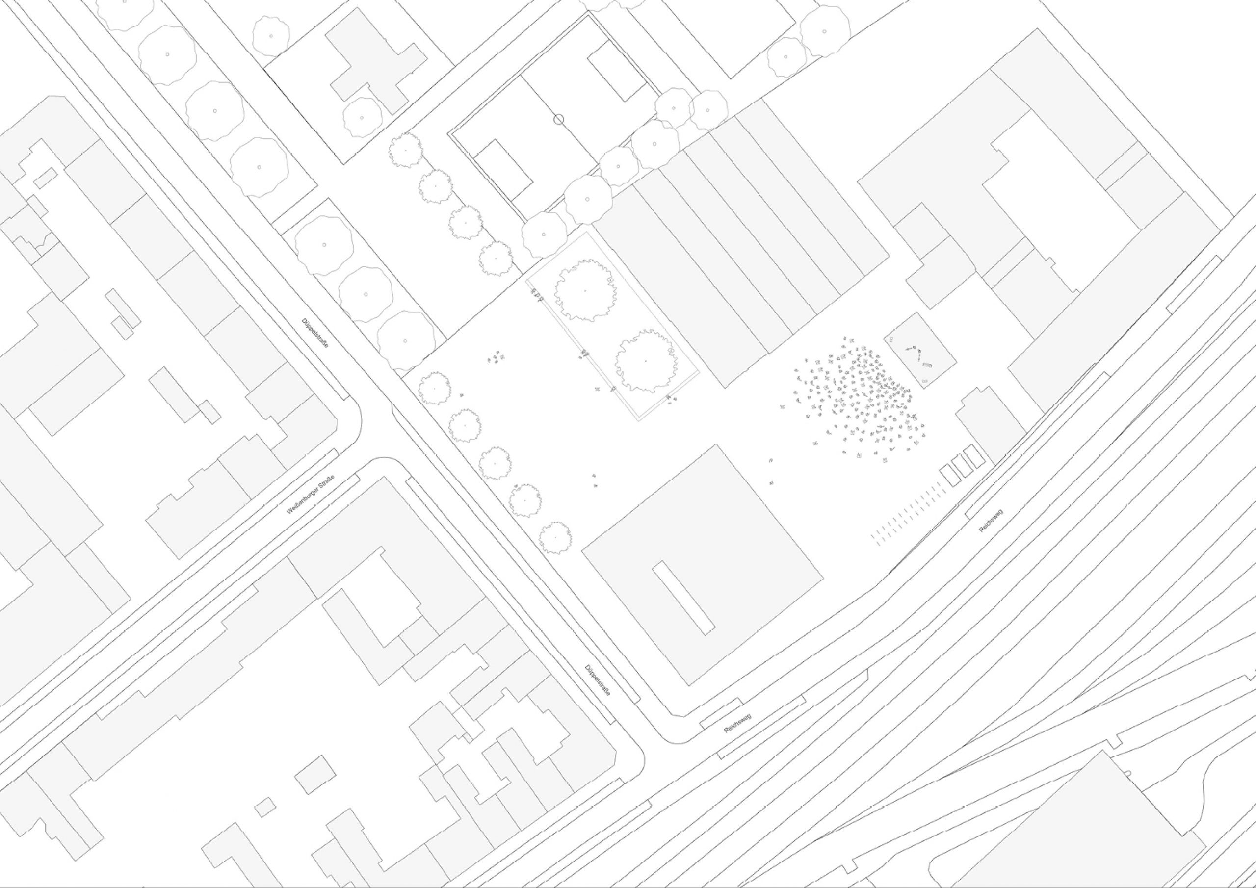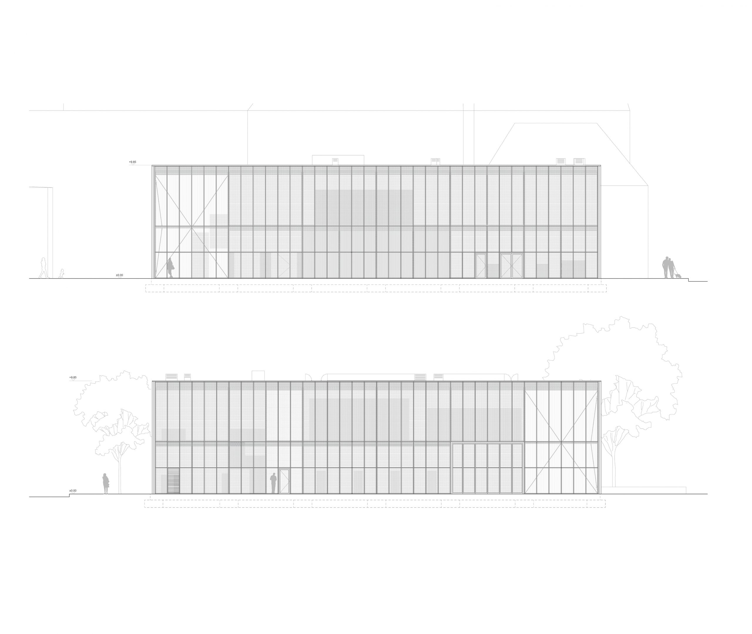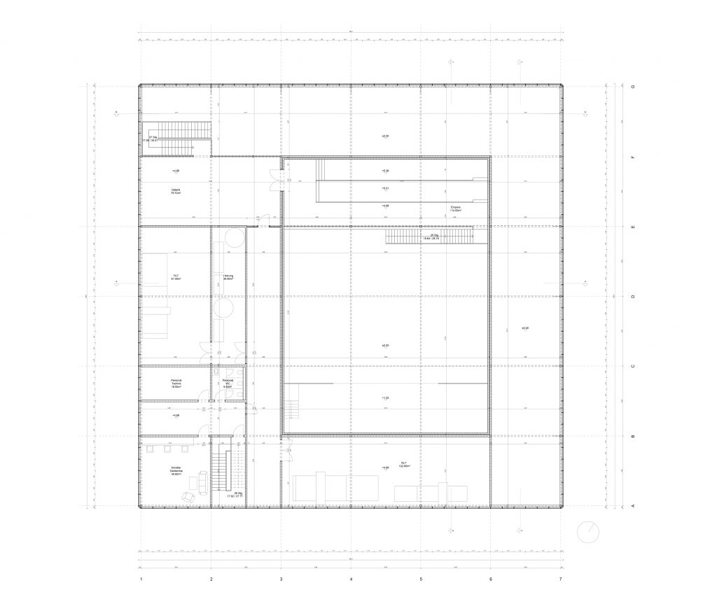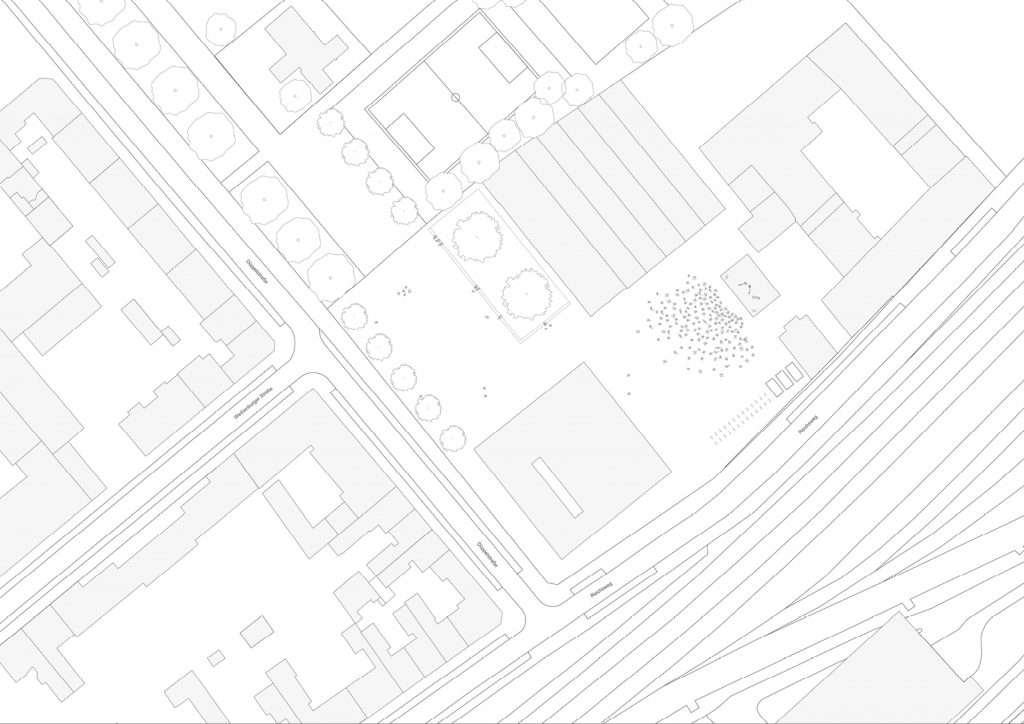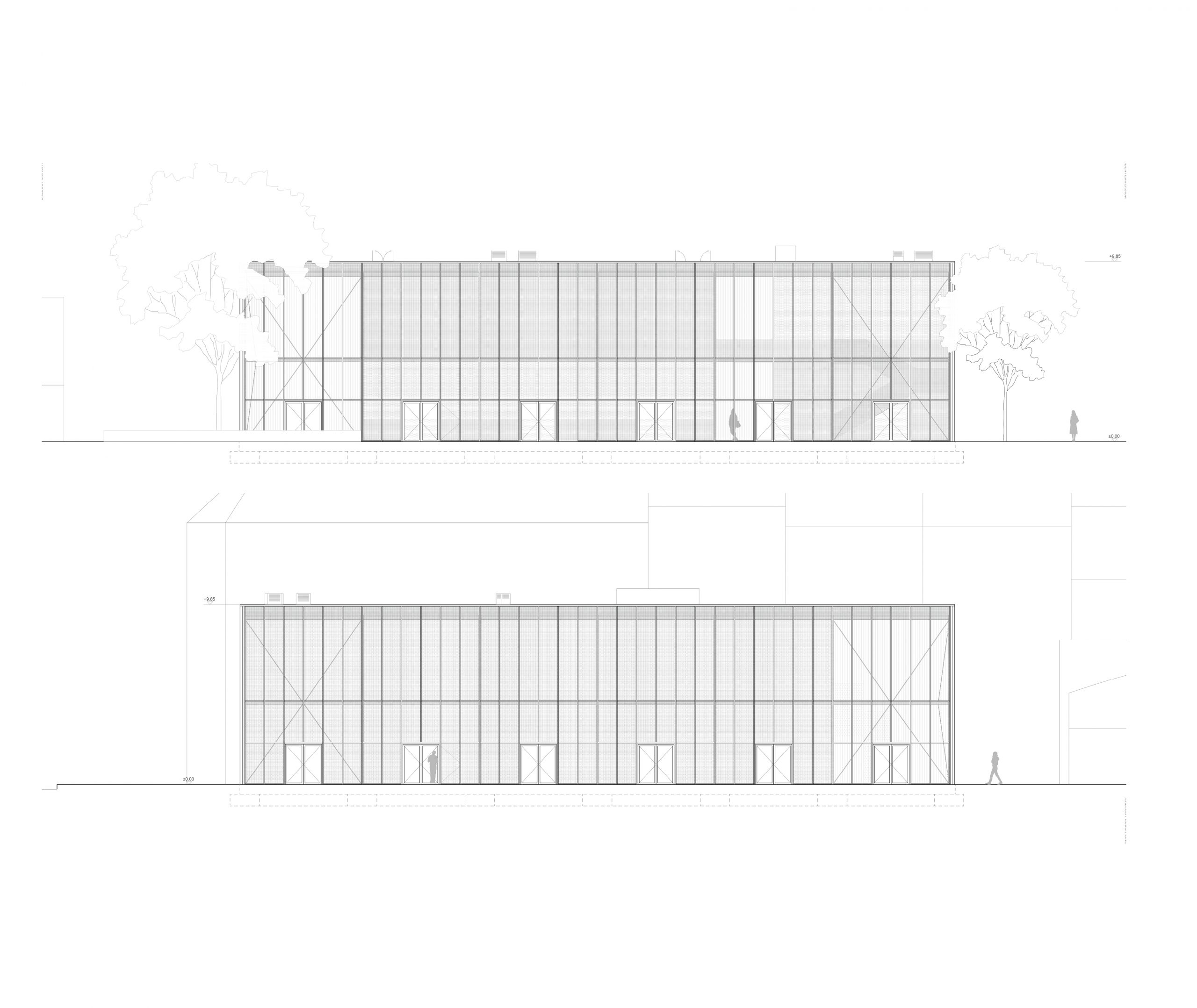The hall opens up to the adjacent park on one side and extends it by an avenue. At the same time, it creates a space for open-air concerts, flea markets and other activities on the other side. The main entrance to the building faces the Kennedypark.