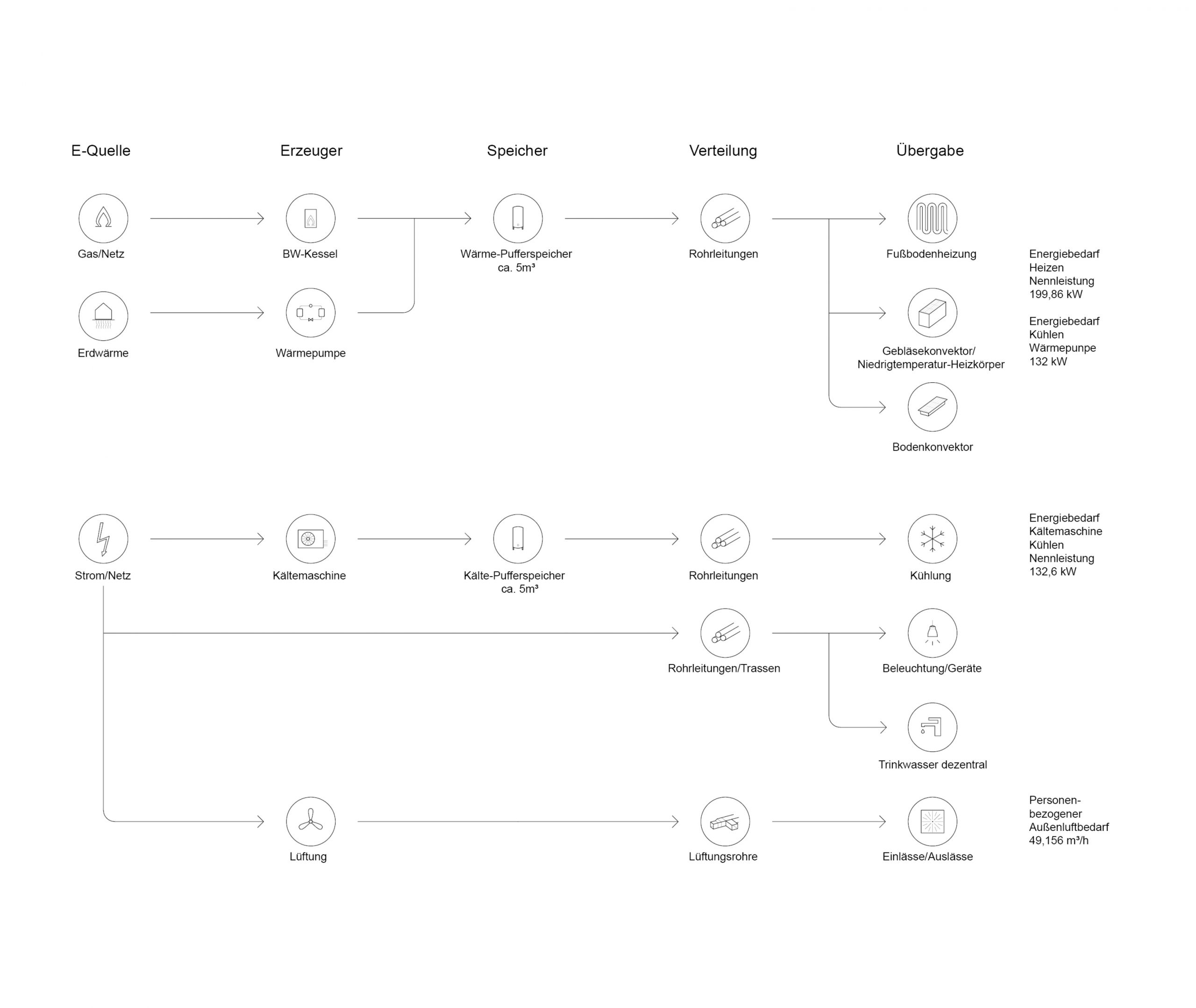 The focus of the project lay on the construction and building technology. In addition to the structural calculations and details, we worked as a team to dimension and plan the building services in detail.